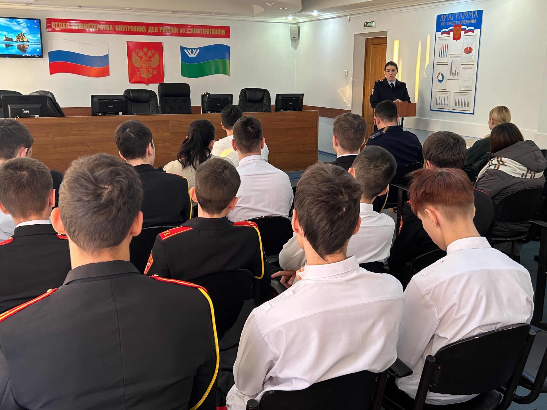В Нефтеюганске полицейские рассказали старшеклассникам о перспективах службы в органах внутренних дел В отделе МВД России по городу Нефтеюганску прошла профориентационная встреча с учащимися 10-11 классов школ города.