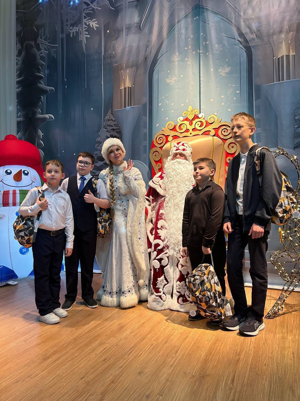 Градоначальник вручил молодым талантам новогодние подарки, после чего ребята приняли участие в фотосессии с Дедом Морозом и Снегурочкой.