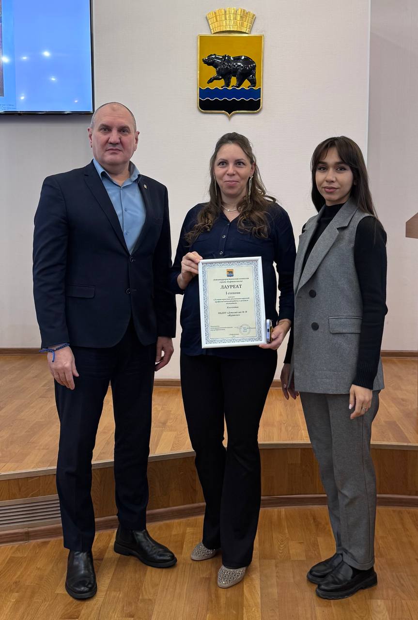 В ходе итогового заседания Антитеррористической комиссии состоялось награждение победителей ежегодного городского конкурса «Лучшая практика реализации адресной профилактической работы с детьми и молодежью». Цель Конкурса - поддержка и совершенствование инфраструктуры и механизма реализации адресной профилактической работы с молодежью в рамках «Комплексного плана противодействия идеологии терроризма в Российской Федерации». Из числа финалистов определены 9 победителей. По итогам рассмотрения конкурсных работ, путем простого арифметического суммирования оценок победителями стали: 3 место - Тихонова Юлия Игоревна, МБУК «Культурно-досуговый комплекс» 3 место - Рудакова Елена Владимировна, МАО ДОУ «Детский сад №6 «Лукоморье» 3 место - Аскерова Елена Леонидовна, МБУ ЦФКиС «Жемчужина Югры» 2 место - Тимофеев Виталий Александрович, МБУДО «СШОР по зимним видам спорта» 2 место - Ефимкина Наталья Николаевна, МБУК «Городская библиотека» 1 место - коллектив мбоу «сош №3», Андреева Виктория Юрьевна, Гарданова Эльвира Фанузовна, Часовских Елена Анатольевна 1 место - Коллектив МБДОУ «Детский сад №18 «Журавлик», Рыжих Анна Алексеевна, ДевятоваДиана Абакаровна (в 2024 году 1 место) 1 место - Каташова Эльвира Рамилевна, МБУК «Городская библиотека»
