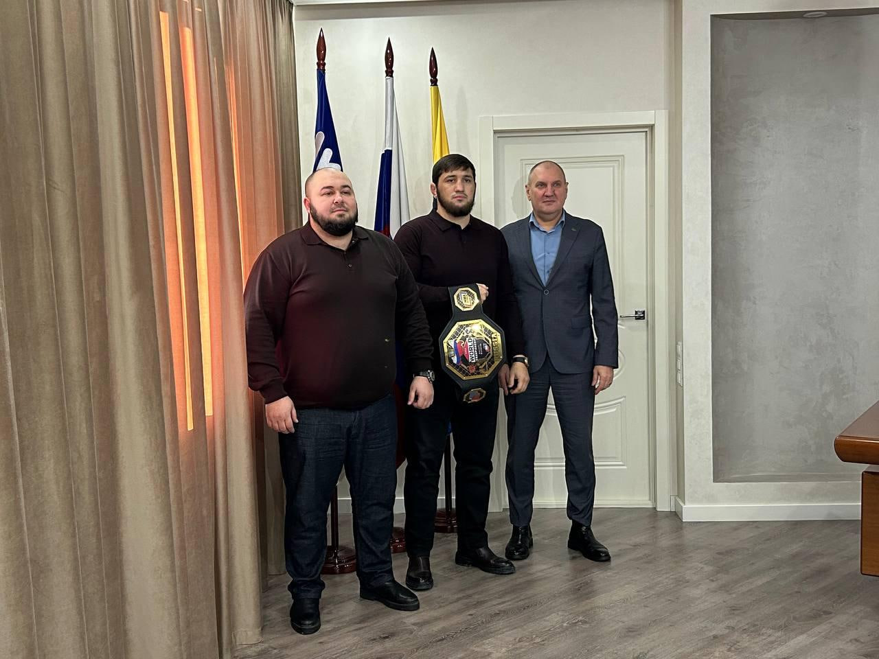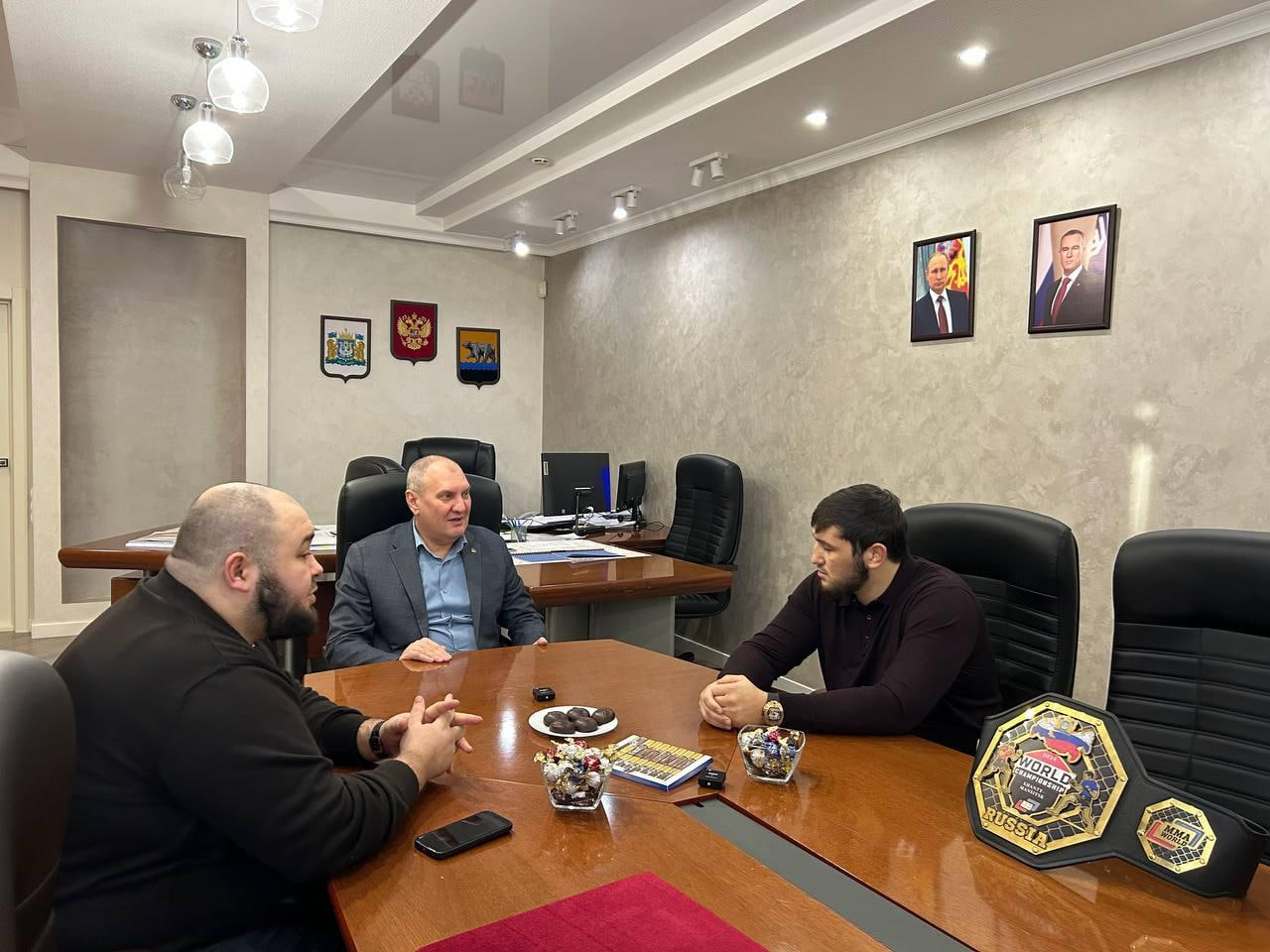 Глава города встретился с чемпионом мира по смешанным единоборствам Гамзатом Сиражудиновым и его тренером и старшим братом Рашидом Сиражудиновым.